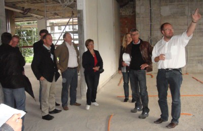 Schwerpunkt des Besuchs der Essinger Räte am 29. Juli 2010 war die Besichtigung der Großbaustelle des Oberkochener Rathauses. Architekt Peter Kayser, Bauleiter Bernd Rentel, Bürgermeister Peter Traub und Stadtbaumeister Johannes Thalheimer präsentierten den Baufortschritt der Rathaus-Generalsanierung, indem sie die Gäste durch die einzelnen Stockwerke der Großbaustelle führten. Nachdem aus dem Konjunkturprogramm 2,1 Millionen Euro an Fördersumme nach Oberkochen geflossen sind, sei die schon lange überfällige in Angriffnahme der Rathaussanierung eine mutige aber richtige Entscheidung gewesen, betonte Bürgermeister Traub.