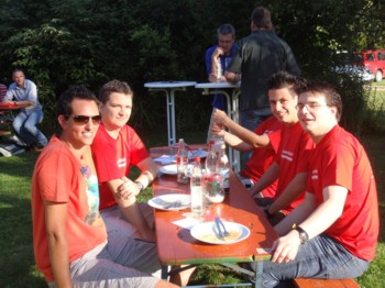 Unterdessen brutzelten auf dem Grill Fleisch und Rote Würste (nur lecker, wenn sie nicht schwarz sind), die dem Wohlbefinden und der Stärkung dienten.